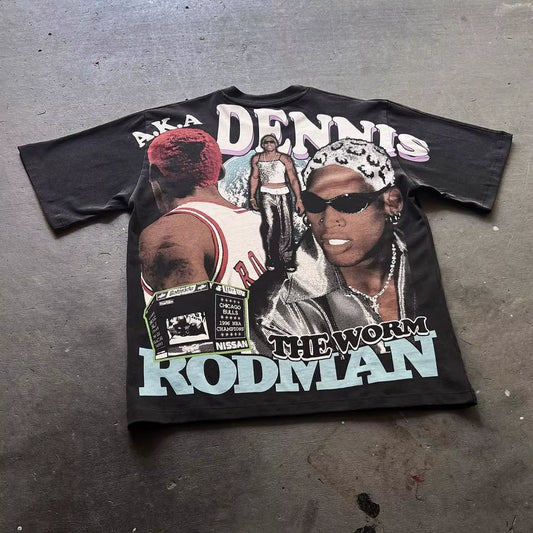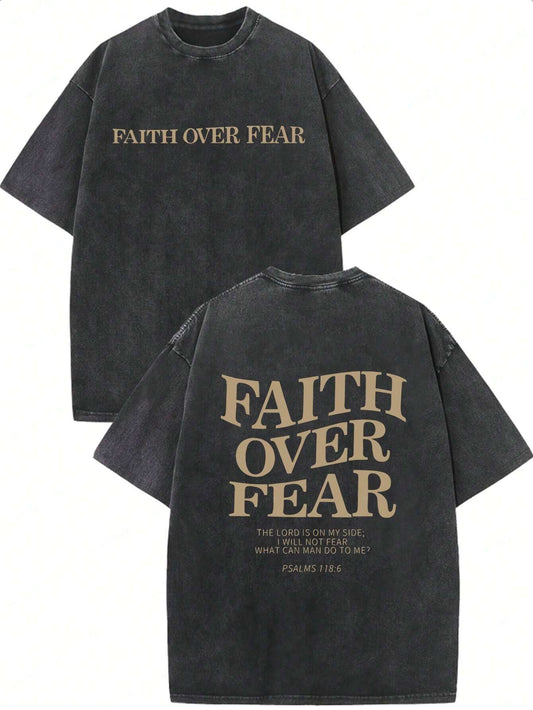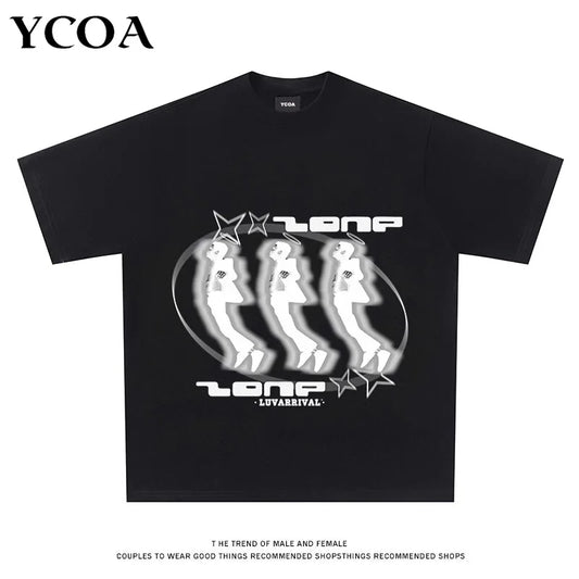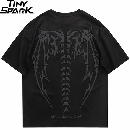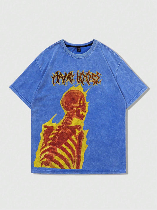 Flame Skull Print Vintage Washed T-Shirt (Cotton)