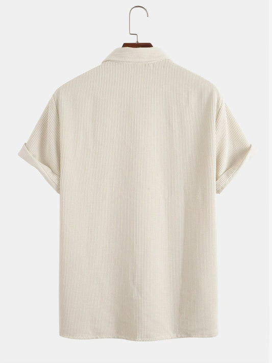 Knitted Cardigan Solid Colors Breathable Men's Short-sleeved Shirt