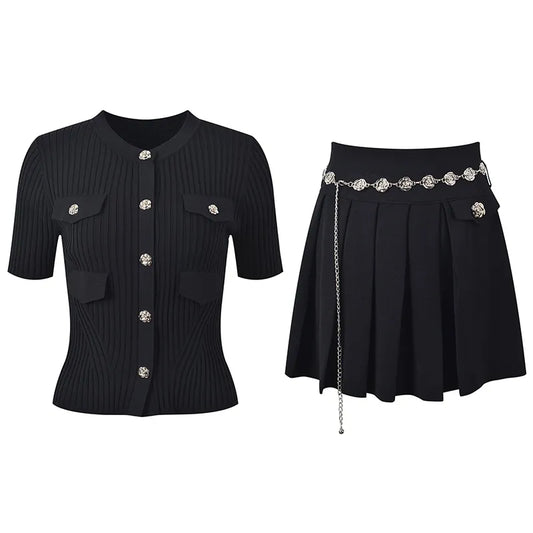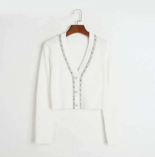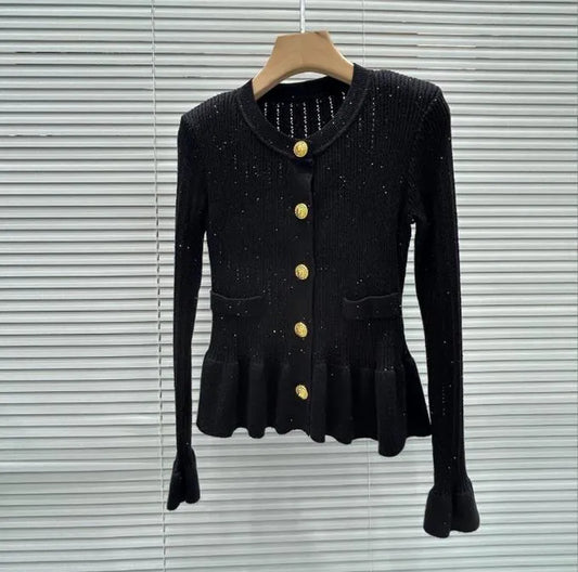 Long Sleeve Crew Neck Black White Cardigan (cotton)